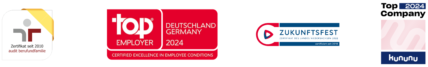 Für uns steht an erster Stelle, dass alle Mitarbeiter:innen ihre Potenziale leben können. Dafür bieten wir ihnen ein Umfeld, das vielschichtige Möglichkeiten eröffnet. Netter Nebeneffekt: Wir erhalten Siegel, die uns das bestätigen.